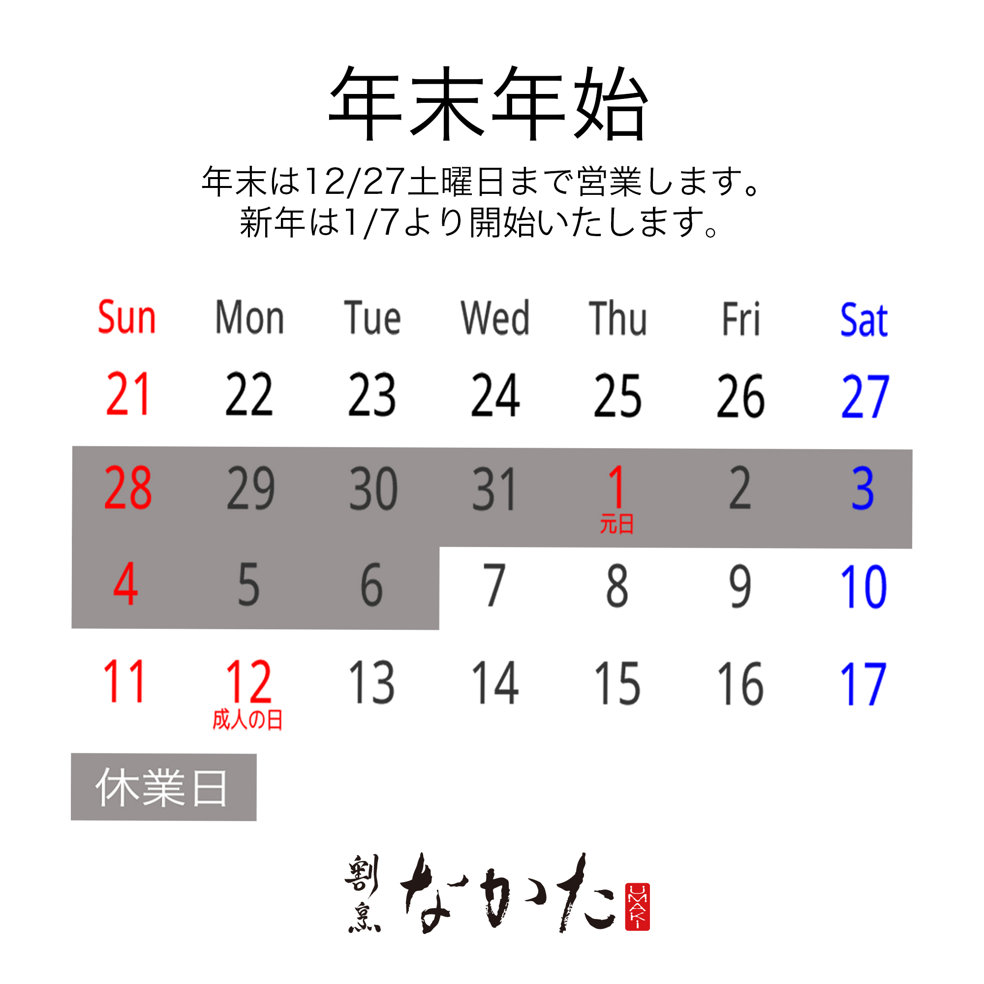 12月24日(水曜日)AM11:30〜PM1:30までランチ営業致しております。